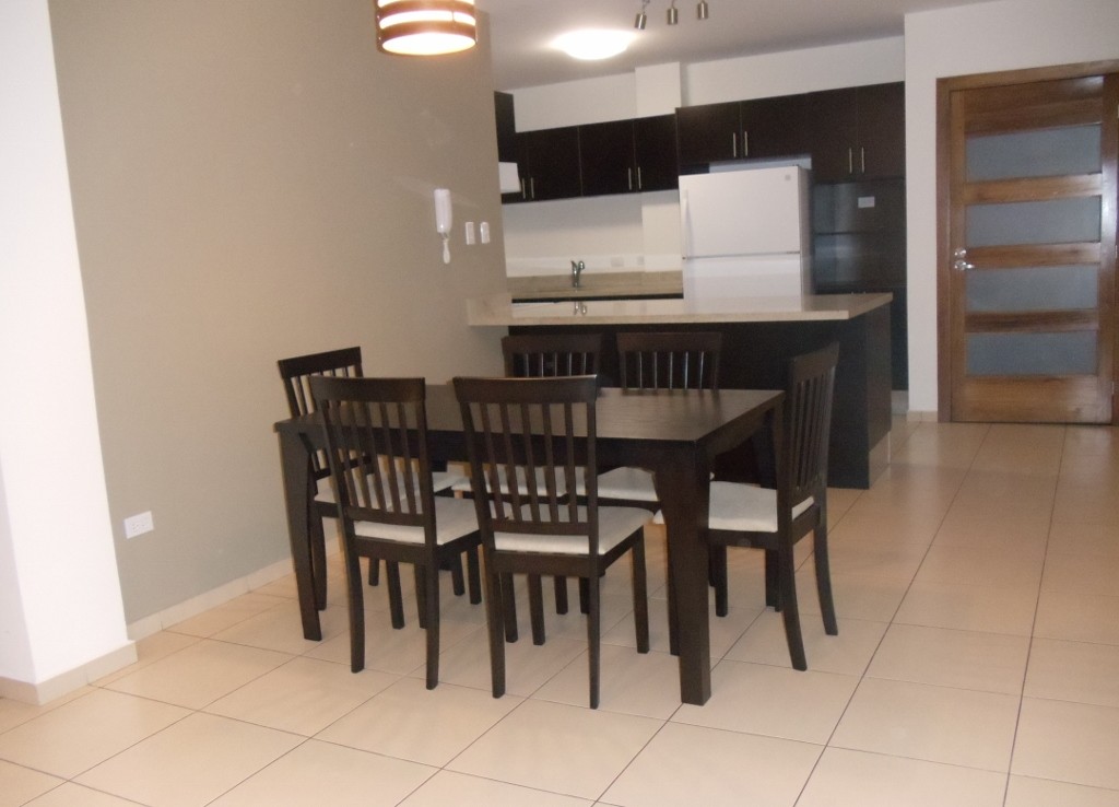 Bello apartamento que consta de sala con terraza, comedor, cocina amueblada, desayunador, dos habitaciones, 2 baños, área de lavandería, 2 parqueos bajo techo, circuito cerrado