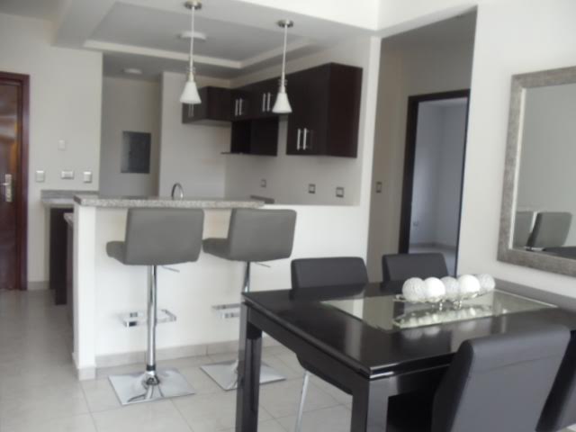 Moderno apartamento de Tres habitaciones, habitación principal con baño completo y walk in closet, habitaciones secundarias comparte baño completo con closet, baño de visitas, sala con excelente vista, comedor, cocina amueblada con top granito, desayunador, área de lavandería, disponibles en 134.2 metros cuadrados, nuevos, modernos, céntricos que con excelente Sistema de seguridad, Paredes entre apartamentos de Electropanel contra el ruido, Ventanas termoacústicas, cuatro áreas de esparcimiento: Mirador en azotea, Salón de eventos, Gimnasio, Centro de Internet, Iluminación en