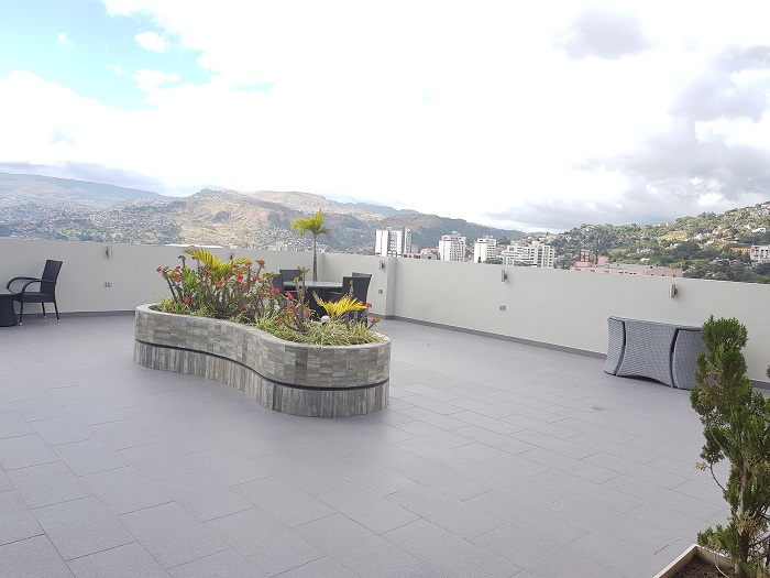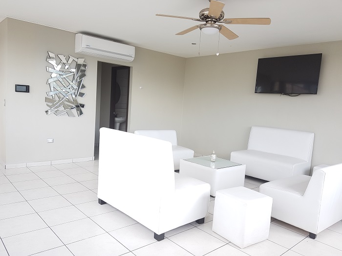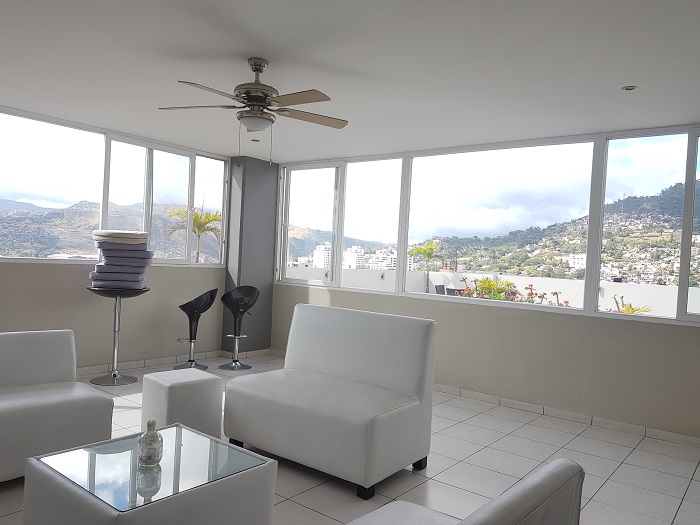 Lindo apartamento que consta de lobby, sala con terraza con excelente vista, comedor, cocina amueblada top granito, desayunador, 2 habitaciones, habitación principal con baño privado, walk in closet, aire a condicionado, habitación secundaria con closet y comparte baño con la visita, área de lavandería, bodega, dos parqueos, portón eléctrico, área social en el edificio: Centro de Negocios, salón para eventos sociales, terraza para barbacoas con excelente vista, gimnasio, área para juegos de niños, seguridad 24 horas,