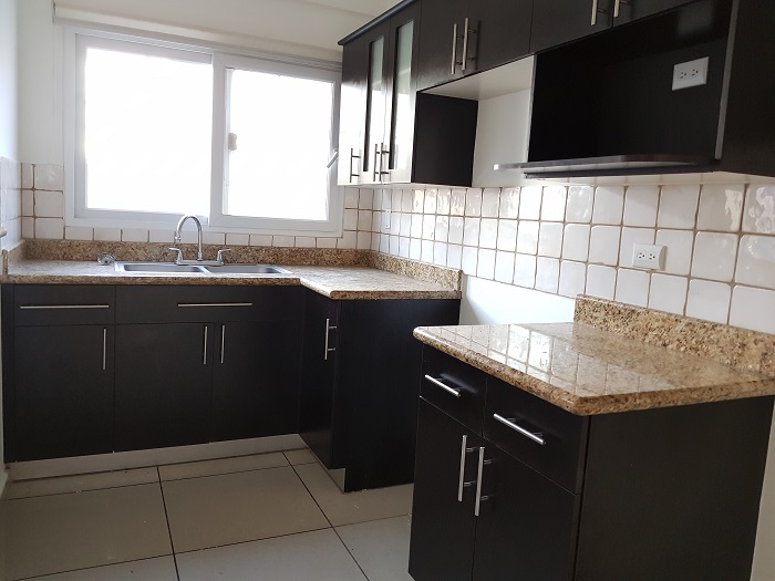 Lindo apartamento en el primer nivel que consta de sala, baño de visitas, comedor, cocina amueblada, desayunador, 3 habitaciones , habitación principal con baño privado y walk in closet, habitaciones secundarias comparten con closet y comparten baño, dos parqueos bajo techo, área social en el edificio , gimnasio, salón de eventos, área de barbacoas, terraza, circuito cerrado.