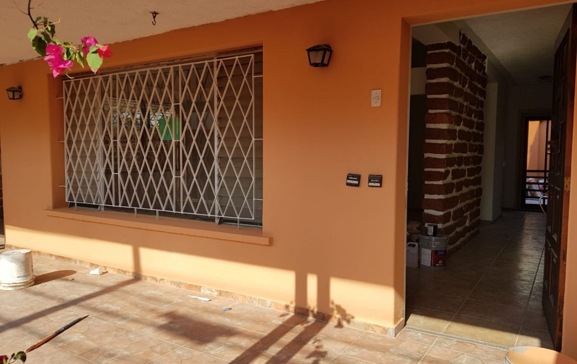 Amplia casa de esquina que consta de sala, comedor, cocina, 5 habitaciones, 4 baños, área de servidumbre, área de lavandería,oficina privada con baño y salida independiente, 4 parqueos, salida a dos calles, terraza, patio. área de terreno 604.11 varas cuadradas , área de construcción 322 metros cuadrados.