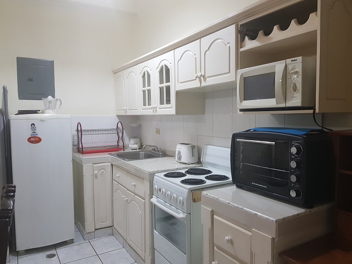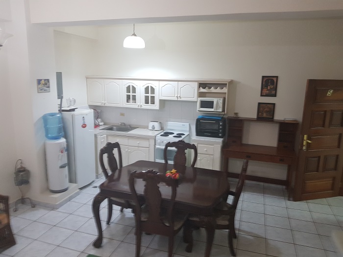 Amplio apartamento completamente amueblado que consta de sala , comedor, cocina amueblada, una habitación con closet, un baño, un parqueo bajo techo , portón eléctrico, incluye agua, cable de tv, generador eléctrico, intercomunicador, seguridad, limpieza de áreas comunes, circuito cerrado