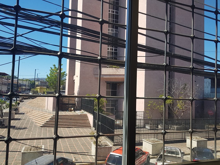5ta avenida y 12 calle de Comayaguela frente al antiguo edificio del Banco Central.