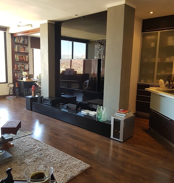 Bello apartamento con espectacular vista , sala , comedor, cocina amueblada top cuarzo, alacena, acabados de caoba, una habitación, amplio closet, un baño, aire acondicionado, piso laminado de madera, 2 parqueos, seguridad 24 horas
