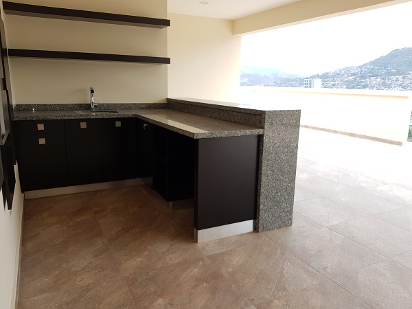 Amplio y moderno apartamento que consta de sala con aire acondicionado, comedor , cocina con mueble, top granito, desayunador, baño de visitas, dos habitaciones con baño  privado con walk in closet, closet y aire acondicionado, área social. Vigilancia 24 horas 115 MTS2