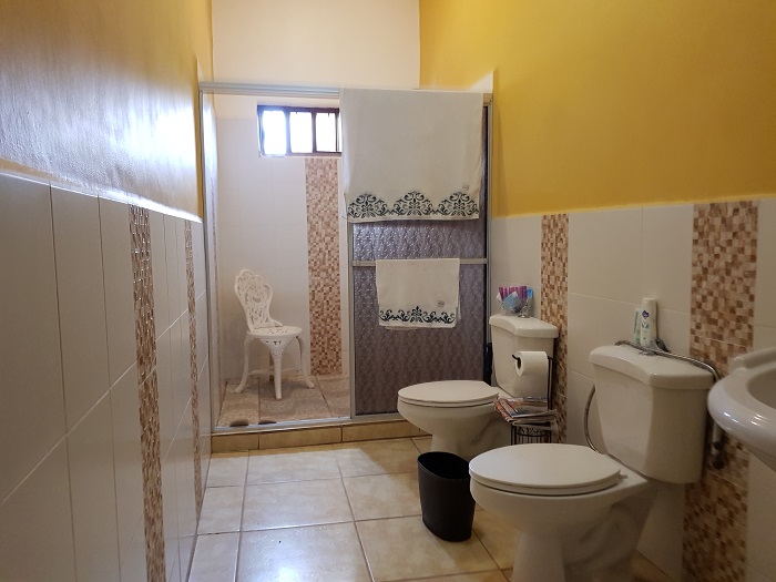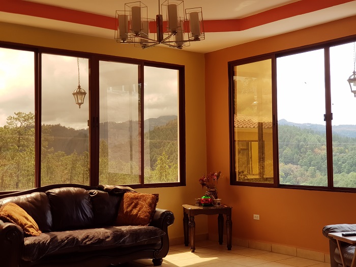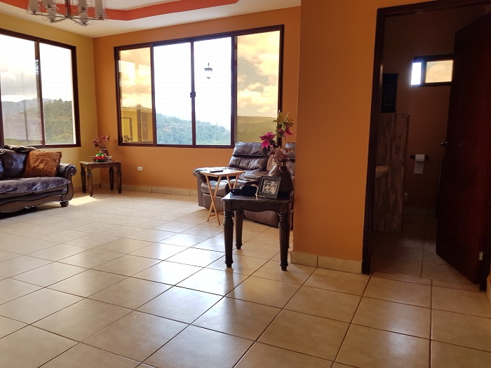 Hermosa casa de amplios ambientes que consta de: Lobby, sala con espectacular vista, comedor, cocina amueblada de caoba con isla, alacena, baño de visitas, bar, tres habitaciones: habitación principal con walk in closet y baño privado, habitaciones secundarias con closet y baño privado, closet para blancos, cisterna de 3, 000 galones, área de servidumbre, extensa área verde, espectacular vista; apartamento independiente de una habitación, cocineta, baño completos, vigilancia L850. área de terreno 2,400 varas cuadradas, área de construcción 300 mts2. Circuito cerrado.