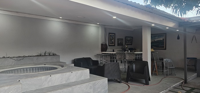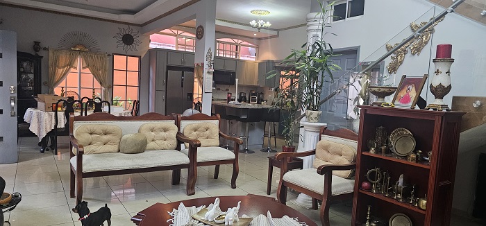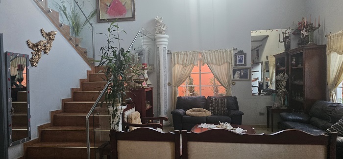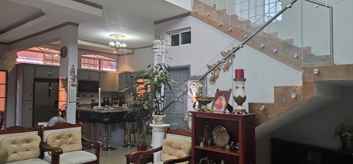 Amplia casa que consta de sala doble altura , comedor, cocina con mueble de caoba top granito , desayunador, alacena, estudio, baño de visitas, 4 habitaciones cada una con baño privado y closet, amplia habitación principal en el primer nivel con walk in closet, y baño privado, bellas terrazas con espectacular vista, sala familiar, bodega, área de servidumbre, 8 parqueos, Bella área social: jacuzzi, bar,área de barbacoas con su respectiva estructura de asientos, gimnasio, fogata.circuito cerrado.