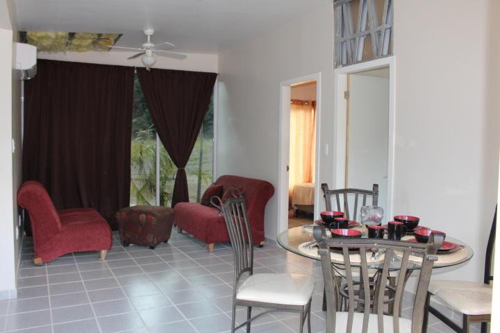 Sala, comedor, cocina amueblada, 2 habitaciones que comparten baño, 2 parqueos, área verde, área social: piscina, área de juegos, circuito cerrado Paredes con aislante térmico, el cual maximiza el ahorro de energía, Diseño moderno y seguro, Grandes ventanales de doble cristal con entrada de luz natural, Paredes y tejados con aislante térmico, el cual maximiza el ahorro de energía, Diseño ingles con tecnología Australiana, Área de construcción 50 mts2 , Área de Terreno 180 varas cuadradas. Cuota de mantenimiento $50
