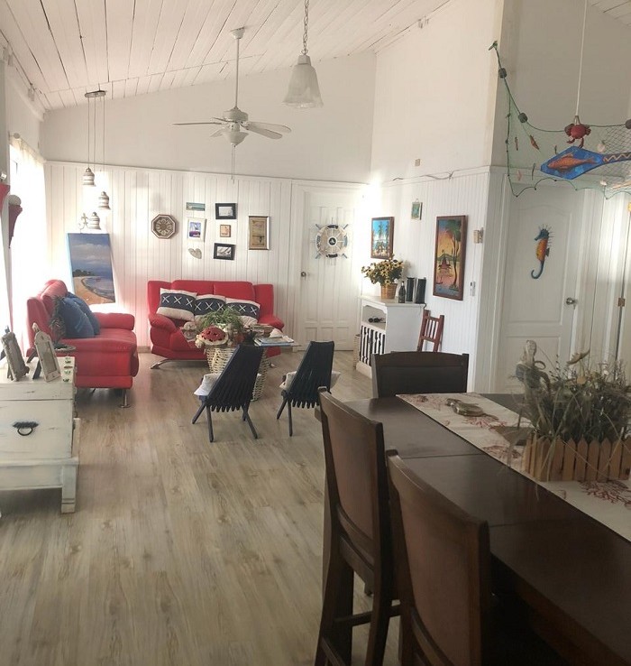 Linda casa de playa que consta de sala comedor con espectacular vista a la playa, amplia cocina, terraza techada, 5 habitaciones grandes con closet, habitación principal con baño privado walk in closet, 3 baños completos, closet para blancos, 2 duchas externas de playa, cisterna y pozo absorción, patio frontal a la orilla de la playa, rompeolas de piedra, casa de vigilancia, área de lavandería, bodega,